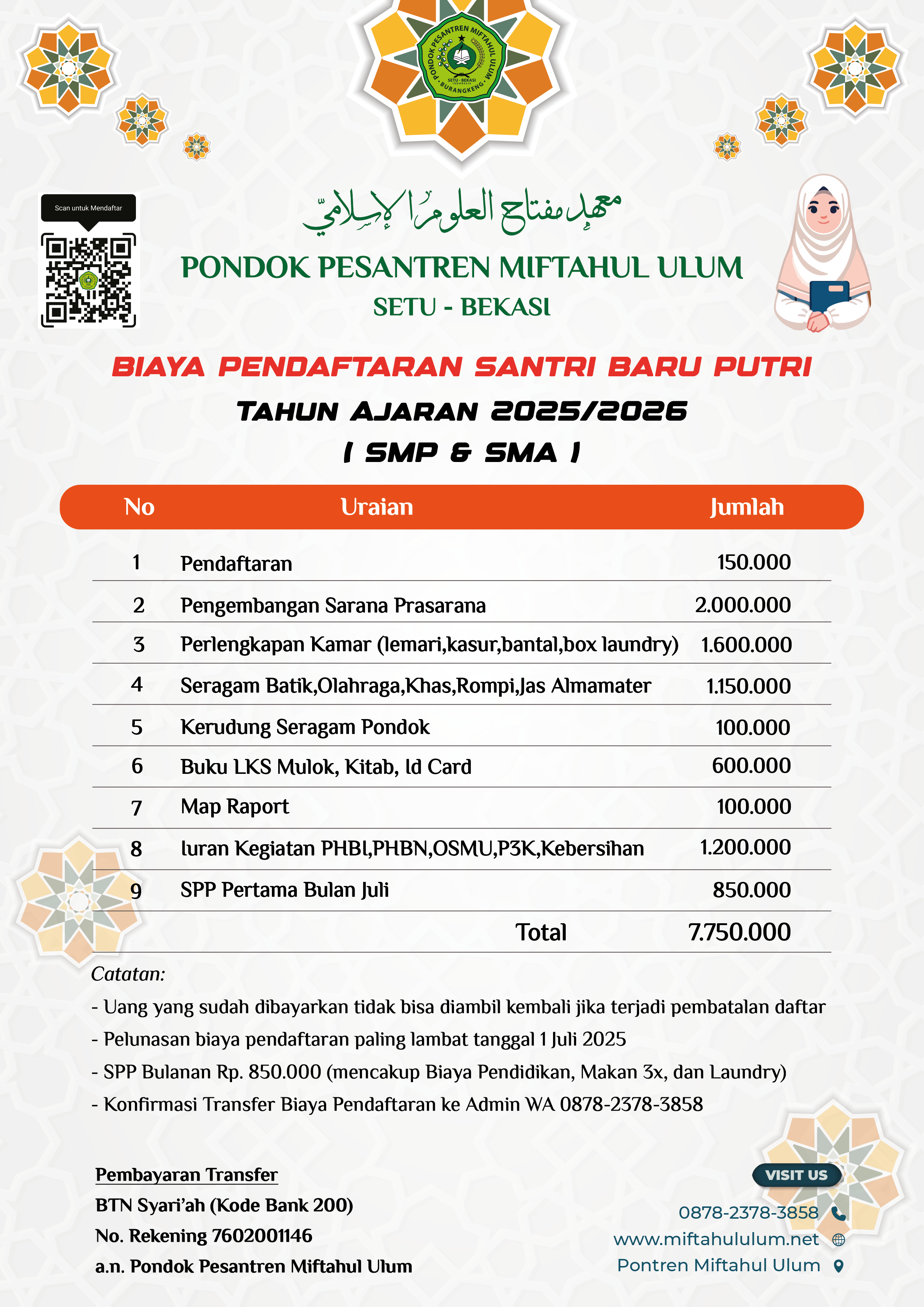 | 8. | Biaya Santri PUTRI_PSB 2025/2026 | 1.6 MB | Unduh |